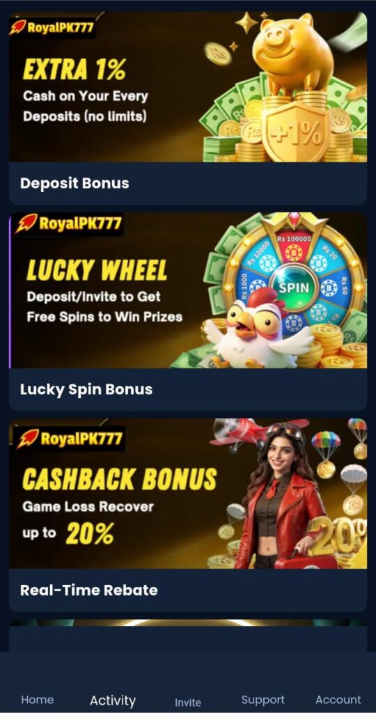 Royalpk777 is an online entertainment and earning game platform that provides a variety of digital games under one system. Users can participate in different game formats using their smartphones or computers without needing advanced technical skills. This simplicity makes Royalpk-777 suitable for a wide range of users across Pakistan.